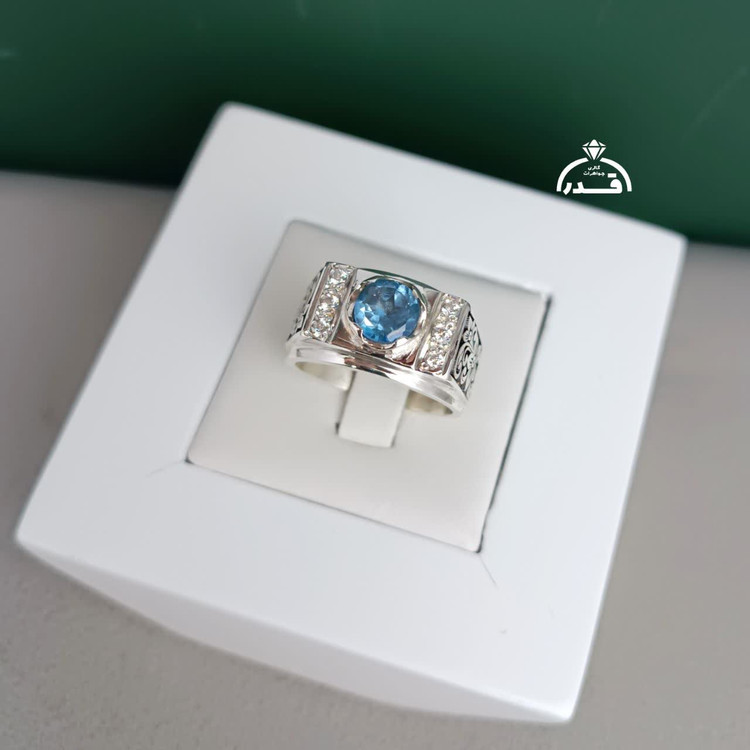 انگشتر توپاز آبی طبیعی کد 1970