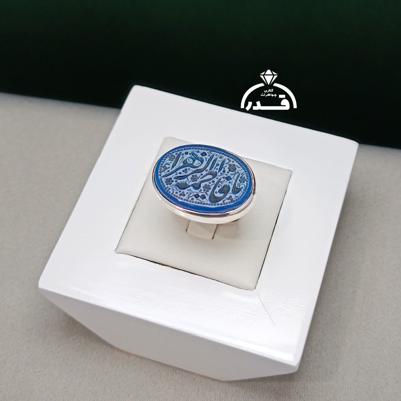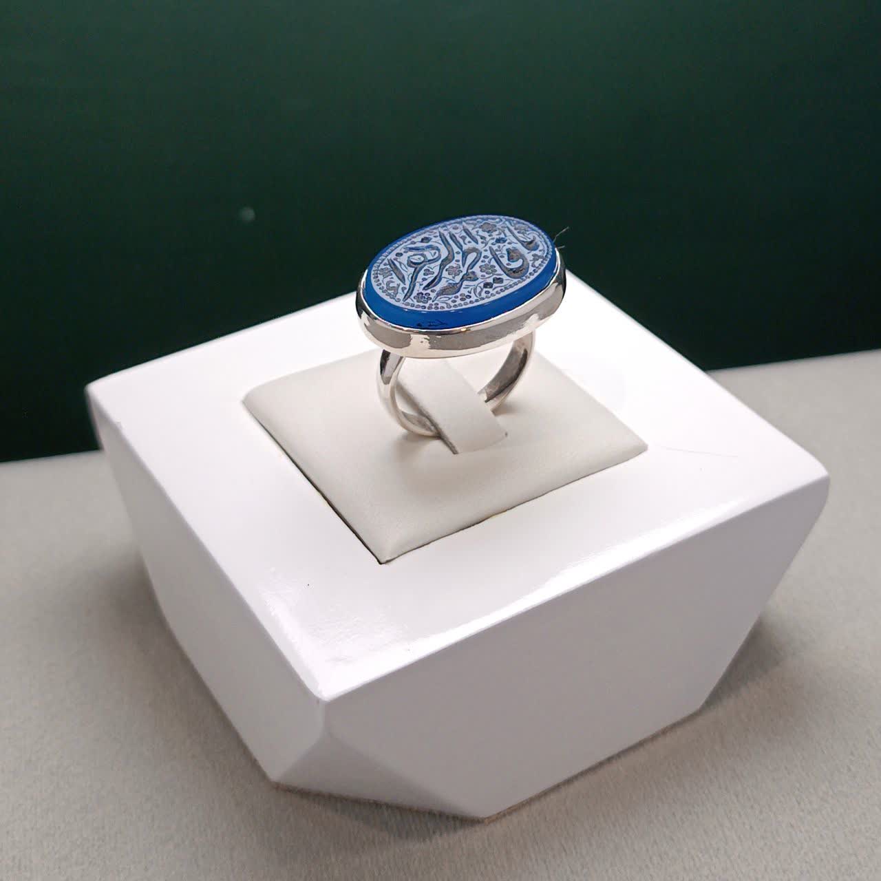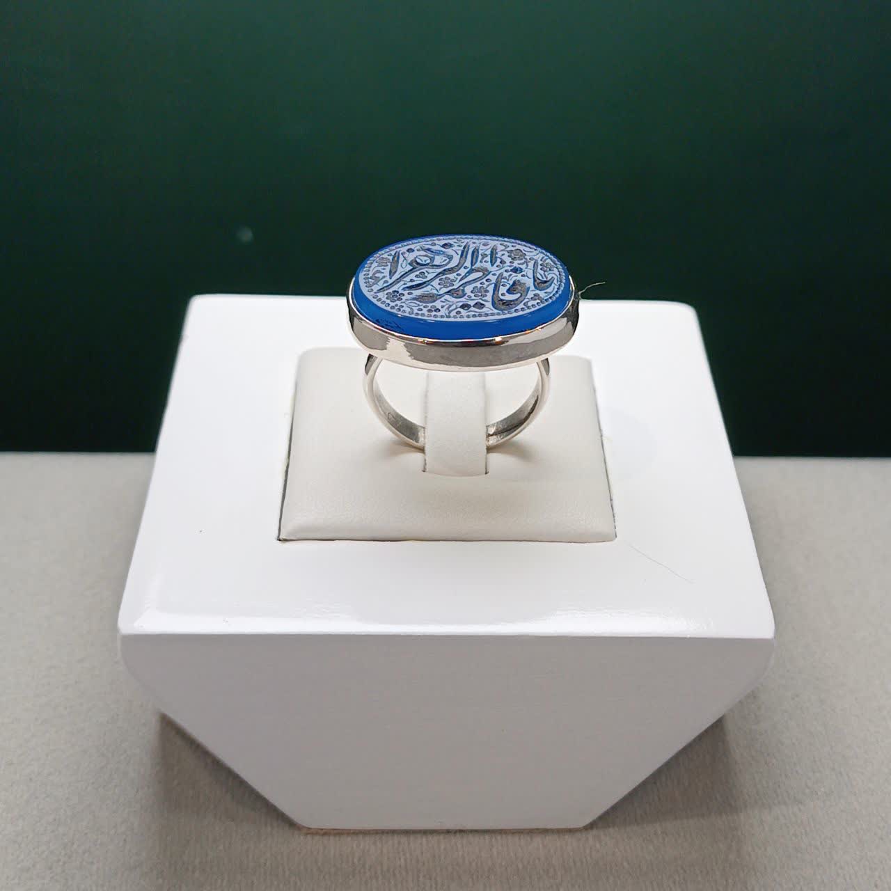 انگشتر عقیق آبی (حکاکی) طبیعی کد 1032