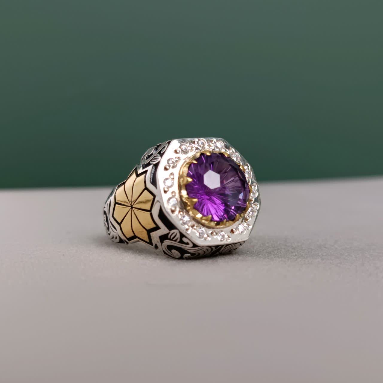 انگشتر آمتیست با شناسنامه طبیعی کد 2268