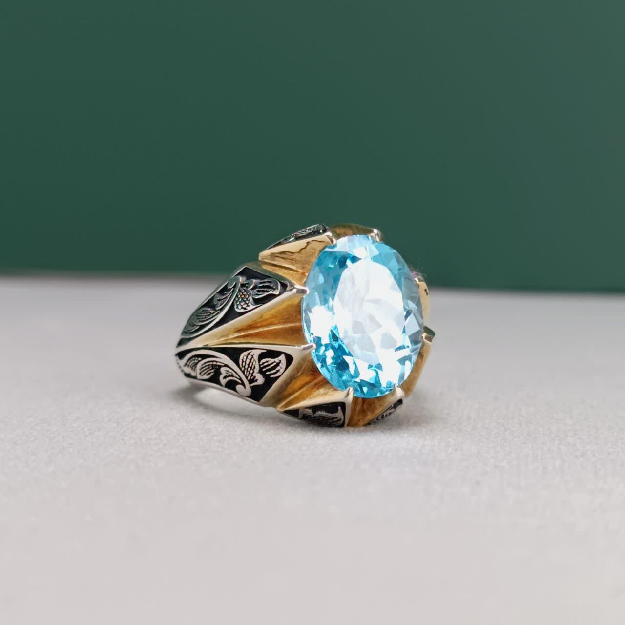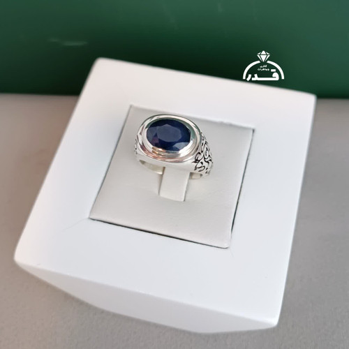 انگشتر عقیق آبی (حکاکی) طبیعی کد 1032