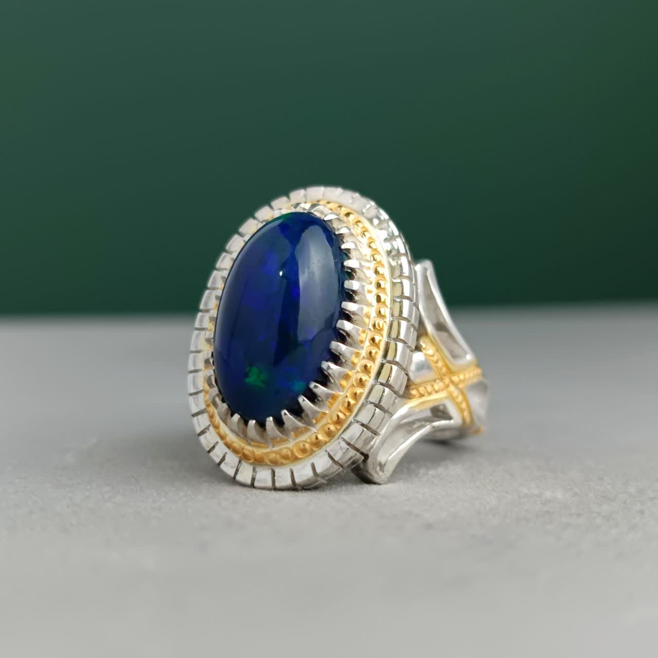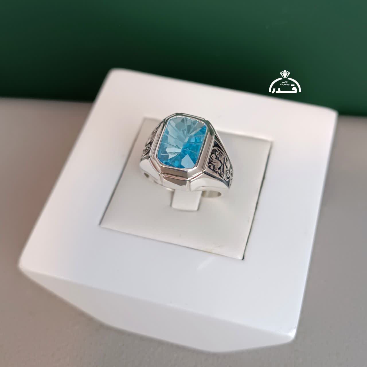 انگشتر عقیق آبی (حکاکی) طبیعی کد 1032